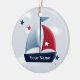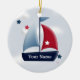 Um belo design de veleiro náutico em um Enfeites de natal projetado por Charmaine Paulson. O ornamento tem modelos de texto para sua personalização. ©2013charmanepaulson