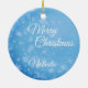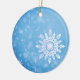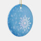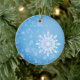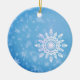 Flocos de neve num fundo azul de inverno, ornamento personalizado.