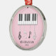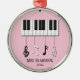 Ornamento Personalizado de Professores de Piano com piano e notas musicais. Adicione o nome do professor para um toque especial ou adicione uma mensagem especial no verso. Presente de Natal de excelente para seu professor de piano ou instrutor favorito.