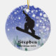 Snowboard Personalizado Ornament Natal 20XX. O Snowboarder coloca-se contra um fundo de neve. Todo texto personalizável, frente e verso!
