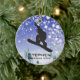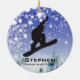 Snowboard Personalizado Ornament Natal 20XX. O Snowboarder coloca-se contra um fundo de neve. Todo texto personalizável, frente e verso!