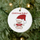 Um bebê com um boné de texto vermelho e vermelho no estilo de criança que lê "Bebê de Natal" em um ornamento que você pode facilmente personalizar para o primeiro Natal do bebê.