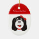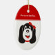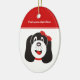 Ornamento personalizado de filhotes de bobo feliz, com um filhote de bobo com arco vermelho na cabeça.