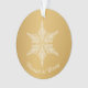 Casado & feliz - Sr. & Sra. Casamento Foto Feriado Ornamento -- Adicione sua própria família favorita, miúdos, ou a imagem do animal de estimação no de volta ao cria uma lembrança personalizada original da lembrança para pendurar para os próximos anos em sua árvore, ou envia-a como o presente os amigos ou aos amados longe. Pode igualmente ser usado para criar o divertimento e o presente memorável etiqueta para as pessoas especiais em seus mamã da lista…, pai, avós, irmãs e irmãos, verso etc. -- O floco de neve filigrana branco do vintage elegante no fundo elegante do ouro com costume opcional curvou o texto.