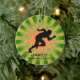 Runner Racer Personalizado Ornament Natal 20XX. Um corredor se coloca na linha de partida contra um fundo verde e laranja de estouro. Todo texto personalizável, frente e verso!