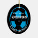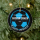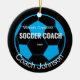 Adicione o nome do seu treinador ou mensagem especial a um treinador neste ornamento totalmente personalizável. Faz um presente de Natal excelente, um presente de apreciação do treinador, ou um presente de final de ano para um treinador de futebol favorito. Esfera de futebol azul com fundo preto