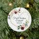 Flores de Borgonha Personalizadas Primeiro Ornamento Cerâmico Engajado no Natal