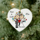 Um coração bonito deu forma a características cerâmicas do ornamento da lembrança uma figura marido e esposa da vara que têm seu primeiro Natal junto como um casal! Adicione facilmente seus nomes e data ao ano em curso nesta figura bonito casal da vara com o ornamento do design da árvore de Natal. Faz uma grande ideia do presente!