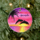 Lembrem-se da praia o ano todo com esta pintura de golfinhos desfrutando de um pôr do sol tropical. Personalize com um nome, data ou mensagem. Um Enfeites de natal maravilhoso para amantes de praia.