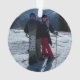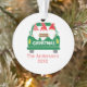 Foto personalizada Enfeites de natal com três gnomos adoráveis em um caminhão verde. Personalizou a frente deste ornamento com famílias sobrenome e ano e adicionou uma foto no verso.