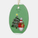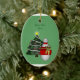 Bonito boneco de neve vestindo uma gravata vermelha de arco segurando um presente em frente a uma árvore personalizável ornamento de Natal. Substitua o texto ou certifique-se de excluir sem texto. Por favor, entre em contato comigo se você também quiser a imagem na parte de trás do ornamento. Se precisar de ajuda ou tiver algum pedido, entre em contato comigo através de Enviar mensagem na minha homepage. Esta imagem está disponível em muitos produtos da minha galeria.