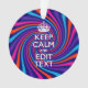 Seu personalizado fica calmo dizendo em uma vibrante decoração multicolorida. Um estilo "Manter Calmo" personalizado dizendo em um presente gentil. Humorístico ou caprichoso experimente suas palavras criativas em duas linhas editáveis de texto. Lembre-se de usar letras CAPITAL para obter melhores resultados. Use o link "Perguntar a este Designer" para entrar em contato conosco com suas solicitações especiais de design ou para obter assistência com suas necessidades de personalização.