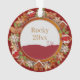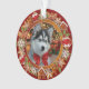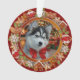 The front of the ornament features a cherished photograph of your pet (e.g., "Rocky," a husky puppy with a red bow).