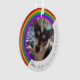 Um ornamento lateral com uma imagem arco-íris em ambos os lados. Muito espaço para duas fotos e um pequeno sentimento pessoal em homenagem ao seu animal de estimação que passou. Design original por Night Owl's Menagerie, 2023.