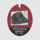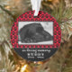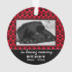 Pet Memorial Photo Paw Print Pattern Name Ornament. O ornamento memorial para o seu amigo de cão falecido. Padrão de impressão de pata preta em vermelho e texto em memória amorosa em um script de tendência. Adicione sua foto e personalize com seu nome e datas ou seu texto personalizado.