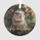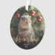 Comemore o primeiro Natal do seu animal de estimação em sua nova casa com este belo ornamento moderno do keepsasasaame. O texto diz "Primeiro Natal na minha casa de quatro em cada vez", com as palavras "uma casa de quatro em cada vez" em um roteiro elegante de folha de papel falsa em ouro. Substitua a imagem de exemplo por uma foto do seu gato ou cão e adicione seu nome e o ano em fontes brancas sans serif. Um filtro de gradiente escuro ajuda a tornar o texto pop.