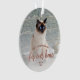 Comemore o primeiro Natal do seu animal de estimação em sua nova casa com este belo ornamento moderno do keepsasasasaame. O texto diz "Primeiro Natal na minha casa de pele de sempre", com as palavras "casa de pele de sempre" em elegante roteiro de folha de ouro rosa. Substitua a imagem de exemplo por uma foto do seu gato ou cão e adicione seu nome e o ano na fonte serif rosa escura. Um filtro de gradiente branco ajuda a fazer o pop de texto.