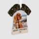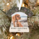 Pet Foto Pet Pet Pet, Cor-de-Rosa, com Ornamento de Guarda-Chão de Natal. Formas de uma linha rosa e bege. Adicione a foto do seu animal. Enfeite de férias ou presente único.