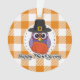 Ornamento Pilgrim Owl em Orange Xadrez - Feliz Ação de Graça