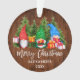 Moderno Escoteiro Feliz Natal. Gnomos de Cores de Água de Natal do Bebê com Presentes de Natal e Ornamento de Pinheiros. Adicionar Nome. Madeira russa do campo.