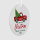 Roteiro Vermelho Moderno do Pincel Vermelho Primeiro Natal Watercolor Vintage Red Truck com Ornamento de Árvore de Natal