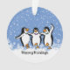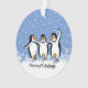 Ornamento acrílico de Design de pinguins dançantes com cor de fundo e texto personalizáveis em dois lados.