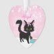 Este adorável Enfeites de natal preto de gatinhos apresenta um fundo cor-de-rosa, luzes brilhantes e os acessórios mais bonitos de gatos. Personalize a frente com um nome e as costas com um ano!