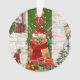 O Natal Pomeraniano de Cachorros sentado do lado de fora da casa decorada com coroa de Natal, a árvore de Natal é uma ideia perfeita de presente de Natal para amantes de cães.