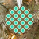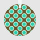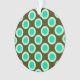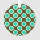 Pontos retrorreflectores com uma fronteira contrastante, baseados em um padrão clássico de estofo moderno do século de Médio - ponto de turquesa/pavão bordado em aqua claro sobre fundo marrom de chocolate