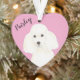 Ornamento Poodle Branco de Coração Rosa Personalizado