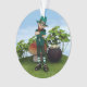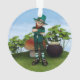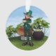 Renderização digital em 3D de um duende em pé perto de um pote de ouro, cogumelos e shamrock. Presente perfeito para o Dia de São Patrício