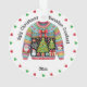 Um presente perfeito para o vencedor das 1ruas para o seu Festival e festa de Suéter de Natal Feio. Cercado por corações verdes e vermelhos sobre um fundo branco sólido este suéter colorido tem um grande arco vermelho no topo, Papai Noel na manga, um boneco de neve, e duas árvores de Natal decoradas, hortelãs de pimenta, presentes embrulhados, e um floco de neve na frente.