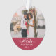 Um ornamento verdadeiramente uma lembrança com a sua foto de casamento favorita, caligrafia Sr. & Sra. com coração conectando, e o nome da sua família com o ano na cor do ano - rosa vermelho! No outro lado está a sua frase de Natal favorita "É o momento mais maravilhoso do ano" com elementos decorativos. Faz um presente encantador!!