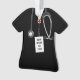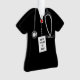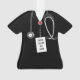 Enfeite de presente para médico com uniforme hospitalar preto. Para personalizar, edite o texto para adicionar nome e ano.