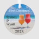Bebidas tropicais no Enfeites de natal de praia para personalizar para um casal de Natal juntos. Duplos lados, e um dos ornamentos mais baratos aqui, a decoração de árvores acrílicas redondas tem três lugares para personalizar o texto. Incluir nomes e data do ano, que será impressão em ambos os lados.