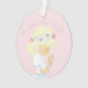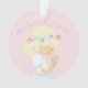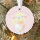 Um primeiro ornamento bonito do comunhão santamente com uma menina loura pequena com as flores em seu cabelo, vestindo um vestido branco e praying com rosário perla em suas mãos. O fundo tem um teste padrão floral cor-de-rosa macio, que repita na parte traseira. Convite de coordenação e outros artigos disponíveis. (Alguns gráficos AMBillustrations ©2017)