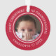 Este Enfeites de natal é de dois lados. Personalize-o com duas fotos. Um na frente e outro na parte de trás. Este modelo funciona melhor com fotos de formato paisagem com o bebê no centro da foto. Personalize o texto com o ano e o nome do bebê.