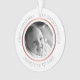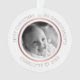 Este Enfeites de natal personalizado moderno apresenta um elegante falso design de ouro rosa. Personalize o nome, o ano e a foto. É de dois lados. A frente terá uma foto em preto-e-branco e a parte de trás terá sua foto original colorida. Este modelo funciona melhor com fotos de formato paisagem com o assunto no centro.