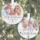 Primeiro Natal Como Pais Novo Ornamento Fotográfico Baby 2. Celebre a alegria de sua primeira temporada de festas como novos pais com este adorno elegante e personalizado. A frente apresenta uma foto apreciada do seu bebê ou um momento doce dos pais com seu recém-nascido, lindamente adorado com a frase "Primeiro Natal Como Pais" na caligrafia de script e uma fonte de serifa clássica, junto com o ano para um toque pessoal. O verso oferece espaço para uma segunda foto, ideal para uma foto adicional do seu bebê ou uma foto significativa da família, acompanhada por "Feliz Natal" no mesmo roteiro delicado com o ano exibido na parte inferior. Os sotaques cardíacos negros e um efeito polêmico branco suave na parte inferior de cada foto adicionam calor e elegância, e as cores da fonte e do coração podem ser personalizadas para corresponder ao seu estilo. Este enfeite é perfeito para comemorar seu primeiro Natal como uma família e faz uma adição sincera ao seu decoro de férias.