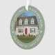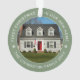 Personalize este enfeite moderno e elegante do "Primeiro Natal em Nossa Nova Casa" com uma foto da sua casa, do seu sobrenome ou da sua família, e do ano em que foi comprado. A cor verde de fundo do sábio elegante pode ser modificada) e o texto branco em forma redonda e os acentos do floco de neve formam lindamente a foto. Dica da foto: recorte a foto em um formato quadrado antes de carregar no site.