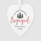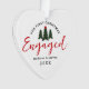 O primeiro Natal Engaged Evergreen Trees Heart Ornament é um presente perfeito para um casal se casar. É minimalista desenhado num ornamento branco em forma de coração. O texto é "o nosso primeiro Natal engajado" em letra vermelha de letra escrita escrita escrita com letra vermelha, misturada com simples letra negra. Os nomes dos primeiros casais estão no impressão de minúsculas e no ano personalizado. Três árvores verdes estão na parte superior e um pequeno coração vermelho está na árvore central. Design está em ambos os lados. Disponível em diferentes formas. Clique na opção personalizar modelo e digite nomes e ano.