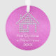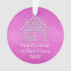 O ideal para sua própria árvore ou um presente do housewarming do inverno, esta decoração bonita do Natal caracteriza a imagem de um símbolo adorável da casa do diamante com a frase "primeiro Natal na casa nova" e no ano 2017. Este ornamento Home personalizado é feito apenas para você!