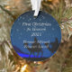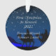 Primeiro Natal na modelo de ornamento do Céu, um doce presente para alguém que sofreu a perda de um ente querido em 2021. Pode ser personalizado com um nome e carregar um retrato no verso. Azul profundo com um fundo de estrelas e homens sábios em camelos.