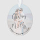 Guarde o ornamento para recém-casados com a sua foto sobreposta com "Nosso Primeiro Natal como Sr. & Sra." escrito em uma mistura de simples tipografia e um roteiro de na moda e seus primeiros nomes e data de casamento. Adicione uma foto adicional no verso.