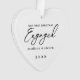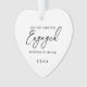Primeiro Envolvido Natal Mínimo O Ornamento Moderno é uma ideia perfeita de presente para um casal com planos de casamento. Ele é simples desenhado em um ornamento em forma de coração branco editável. Disponível em diferentes formas. O texto é "o nosso primeiro Natal engajado" em letra escrita manuscrita de tendência preta misturada com simples letras pretas. Os nomes dos casais estão em impressão de minúsculas. Design está em ambos os lados. Clique na opção personalizar modelo e digite nome e ano.