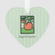Obrigado seu professor de inglês com este ornamento de maçã. O fundo mostra listras verdes pálidas que suportam a maçã na frente.