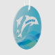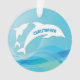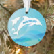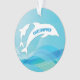 Os azuis e verduras suaves das ondas giratórias dispararam os golfinhos brancos saltando para o ar. Deseje alguém que goste de golfinhos e do oceano.