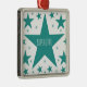 Coleção Superstar Ornamento Quadrado Premium em Teal com uma cascata de estrelas divertidas. Esta design de estrela giro e giro faria um presente de excelente para qualquer filha, sobrinha ou outra jovem mulher na sua vida. Esta estrela divertida faria um adorável ornamento de manutenção ao adicionar um nome e/ou uma saudação personalizada.