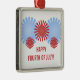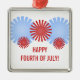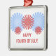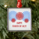 Arranjo divertido e divertido para Retro Fireworks Premium Square Ornament com gráficos de fogos negros e exclusivos em vermelho e azul-claro. Este ornamento legal faria uma adorável manutenção ou decoração quando personalizado com o texto de sua escolha!