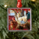 Ornamento quadrado superior com imagem da galinha e do galo no barnyard.